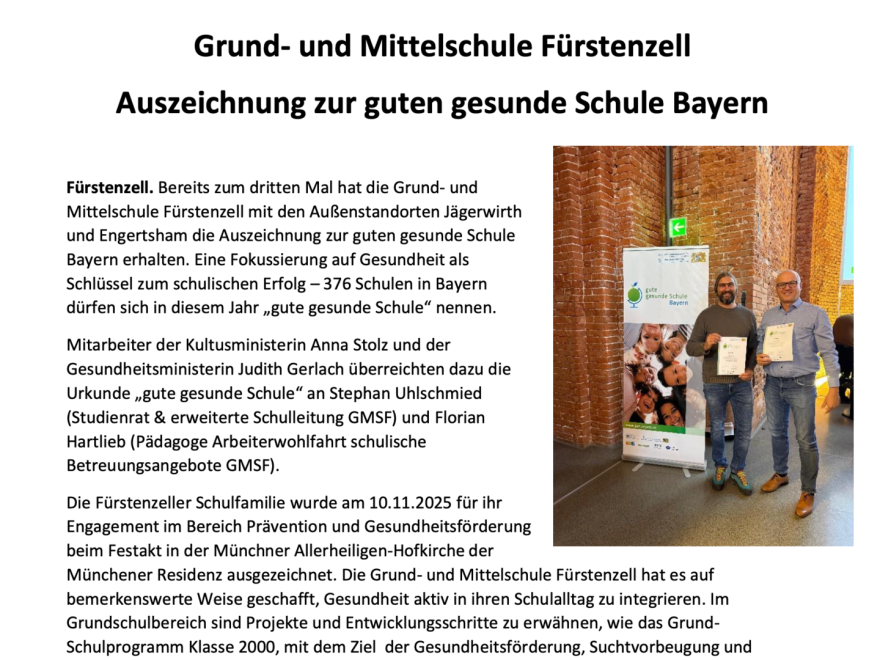 Schulentwicklung Integration & DaZ/DaF an der Grund- und Mittelschule Fürstenzell AWO macht Schule - 15 Jahre Ganztagesschule